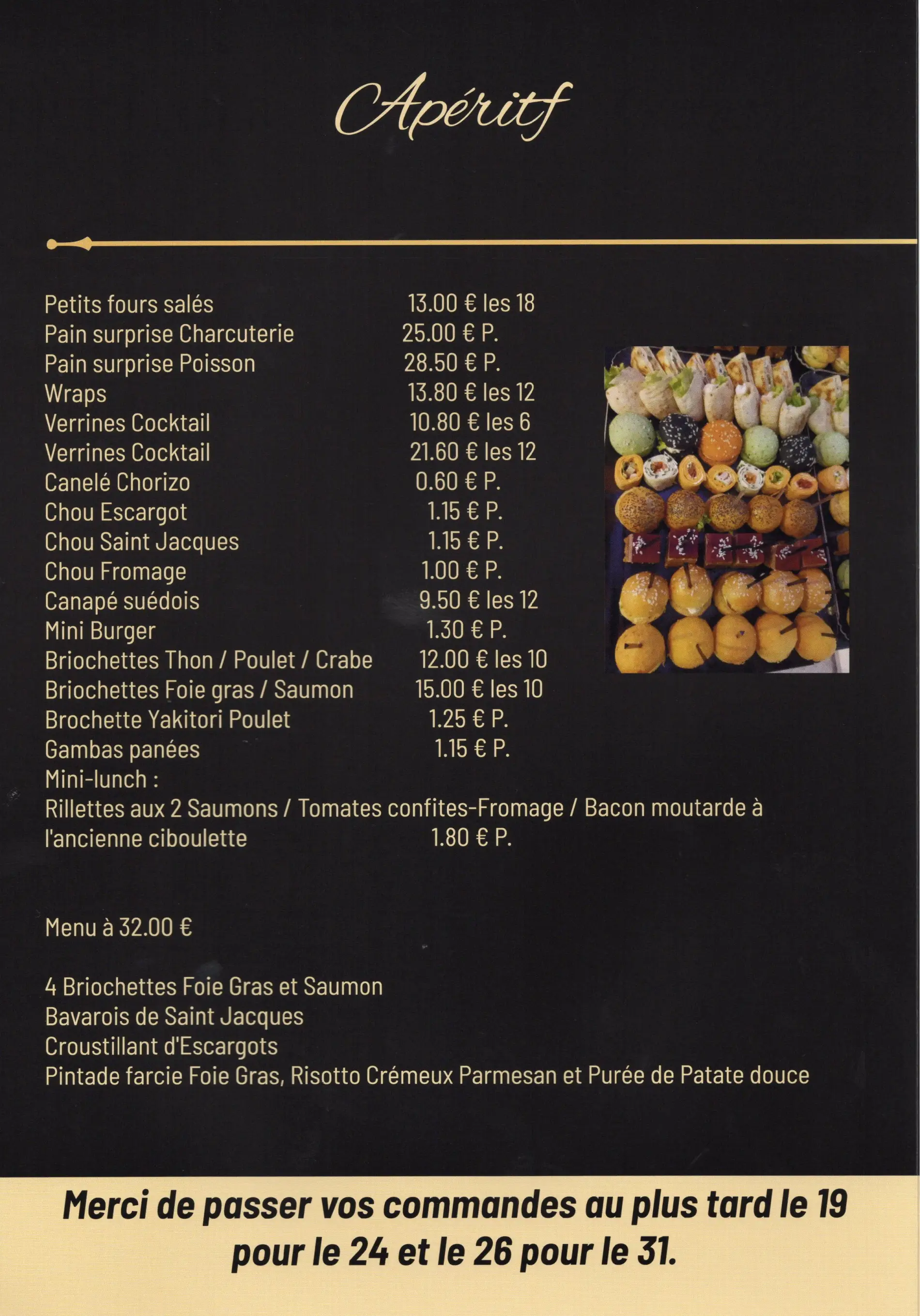 Notre équipe se fera un plaisir de vous accompagner dans le choix de votre menu de fêtes.